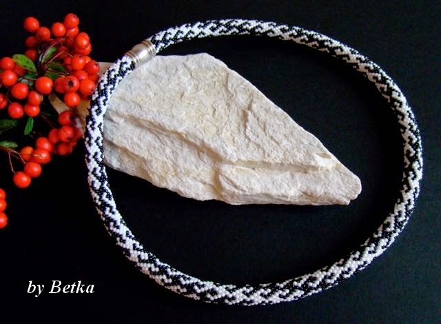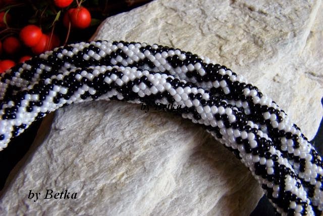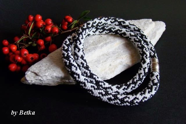 Widziałam już kilka naszyjników z zastosowaniem tego wzoru i we wszystkich prezentuje się rewelacyjnie! podziwiam za wkład włożony w nawleczenie tego wzoru :)