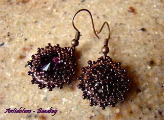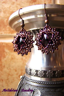 Długo zastanawiałam się jaki dać tytuł postowi, który roboczo nazwałam 'śliwkowym rivoli'. Aż tu patrzę a tu u Danusi 'śliwkowy październik'. Aż podskoczyłam, bo taka zbieżność nie trafia się często - kolor i nazwa. Zbieżność nastąpiła w moim wyborze koloru i nazwy do kolejnej pracy. Udało mi się, bo akurat robiłam kolczyki w kolorze zadanym przez autorkę bloga Moje cuda cudeńka na październik. Dawno już nie bawiłam się w kolory, więc teraz czemu nie.