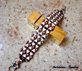 Na przestrzeni paru ostatnich miesięcy firmy koralikowe niemal zasypują nas nowymi propozycjami kształtów i kolorów. Staram się działać ostrożnie i nie dać się zwariować. Parę postów temu deklarowałam pracowanie głównie na bazie materiału zalegającego pudła i organizery i w zasadzie tego się trzymam. Jednak spodobała mi się ta bransoletka bardzo, poza tym autorka publikowała instrukcję za dramo, więc nie mogłam się powstrzymać i kupiłam koraliki kheops i zrobiłam bransoletkę o intrygującej nazwie Cleopatra's Path Bracelet.